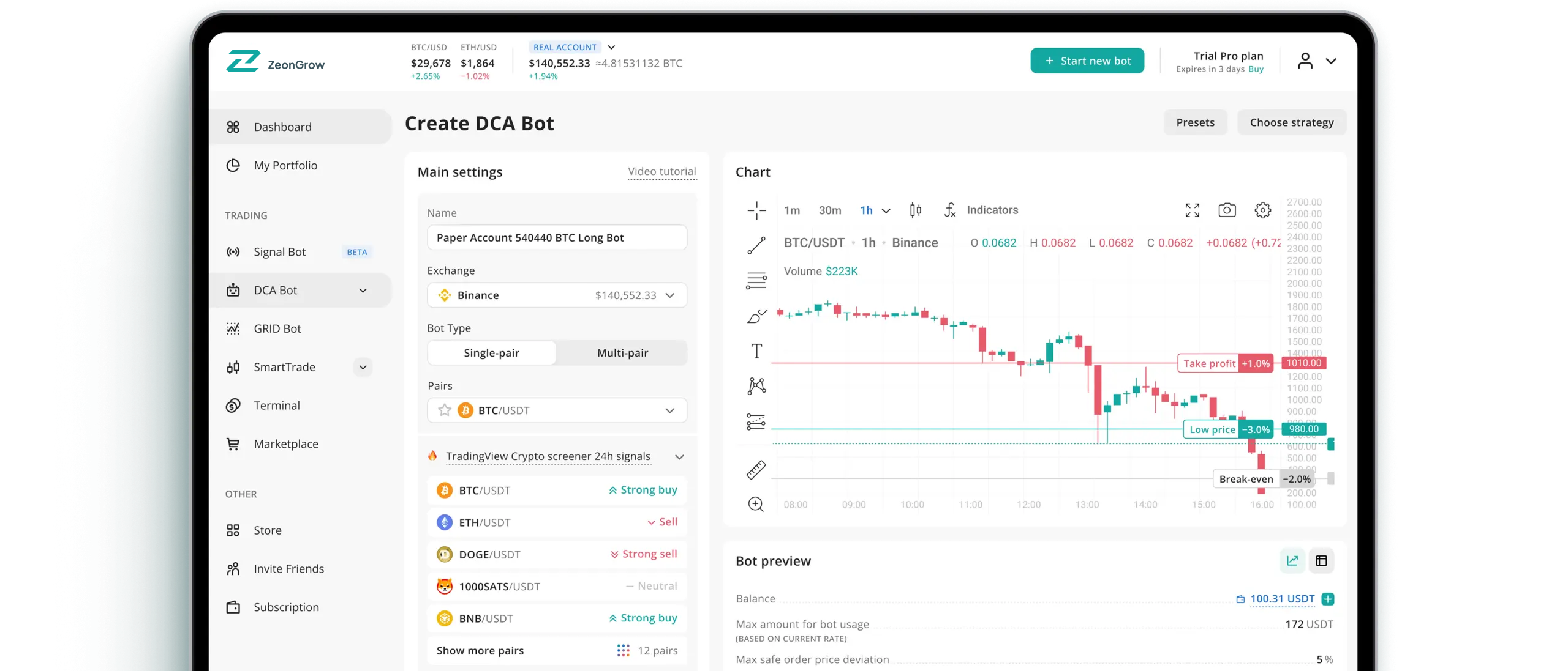 Per Klick aktivieren. Dein Bot handelt 24/7 — du behältst die Kontrolle.